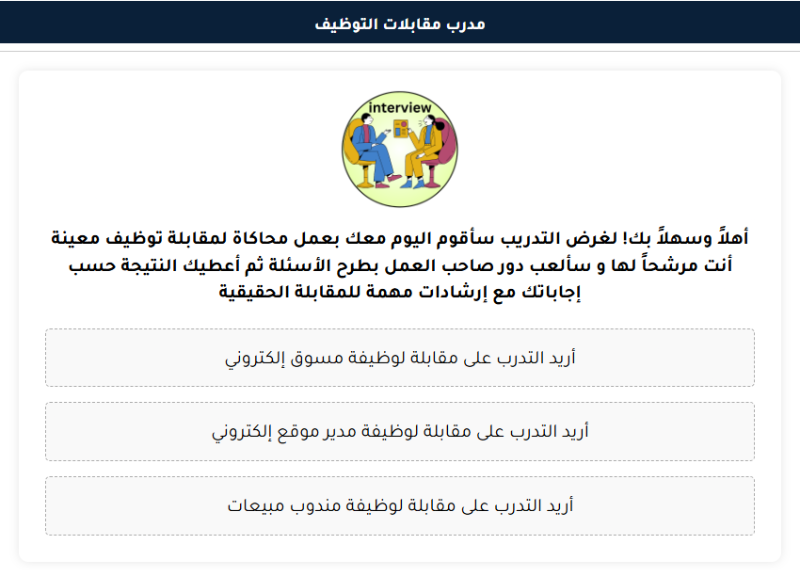من خلال منتدى الذكاء الاصطناعي، يمكن للمستخدمين الاستفادة من هذا المساعد المتطور الذي يساعد في بناء الثقة بالنفس، وتحسين مهارات التواصل، وزيادة فرص النجاح في المقابلات الوظيفية الحقيقية.