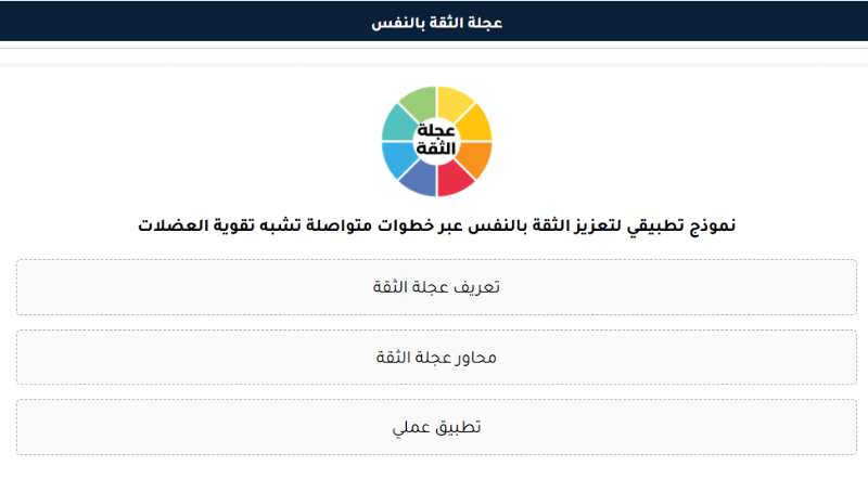مرشداً لا يعرف الكلل. سواء كنت تستعد لمقابلة عمل مهمة، أو تبدأ مشروعاً جديداً، أو تسعى ببساطة إلى تحسين صورتك عن نفسك، فإن "عجلة الثقة بالنفس" يصمم خطة تناسب احتياجاتك الفريدة.يؤكد تطوير مثل هذه الأدوات المتقدمة في