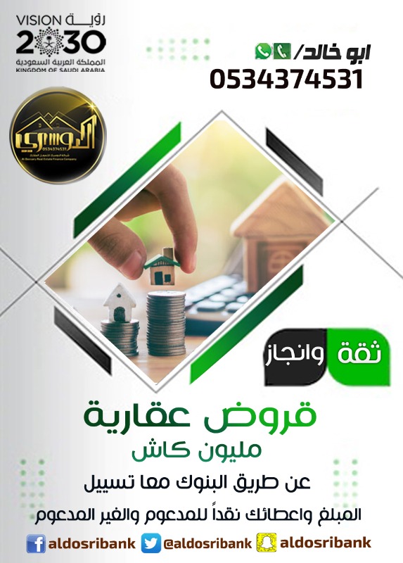 بيع - شراء - تمويل - دعم-ادارة املاك-اسثتمار- تثمين-تقييم