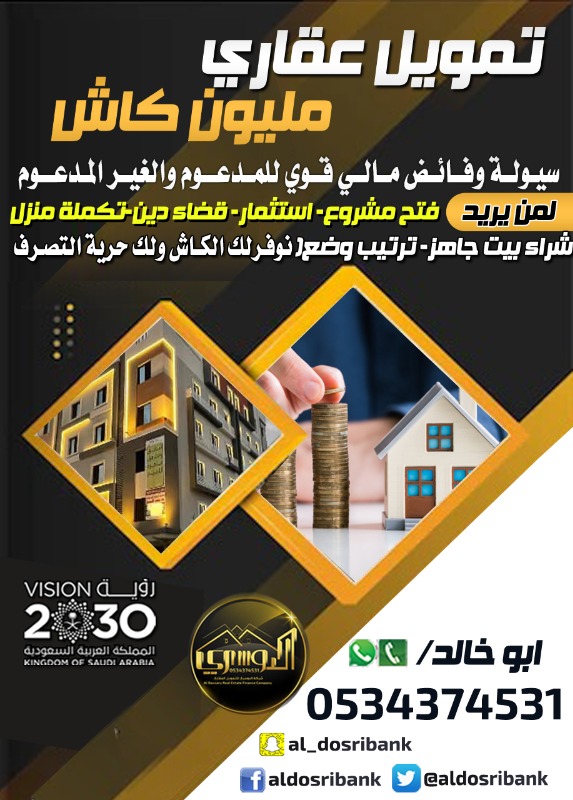 بيع - شراء - تمويل - دعم-ادارة املاك-اسثتمار- تثمين-تقييم