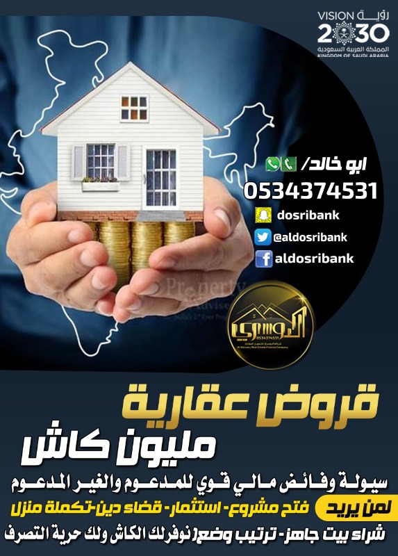 بيع - شراء - تمويل - دعم-ادارة املاك-اسثتمار- تثمين-تقييم