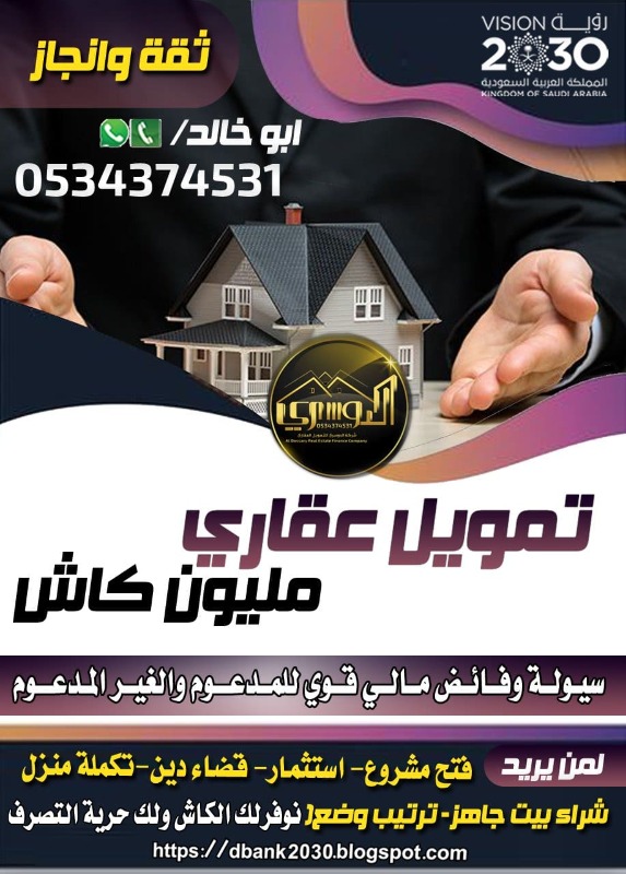 بيع - شراء - تمويل - دعم-ادارة املاك-اسثتمار- تثمين-تقييم