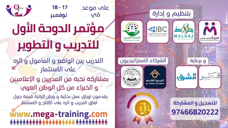 نظراً لما قدمته قطر من أعمال دولية متميزة في كافة المجالات، وخاصة بعد نجاح الدولة في تنظيم كأس العالم، وشهادة العالم لها بالتفوق والتميز في إعداد وتنظيم الاحتفالات. وانطلاقاً من رؤية قطر 2030 والتي تولي التنمية المستدامة الأهمية العظمى نتشرف بمشاركة النجاح ووضع بصمة في عالم التدريب والتطوير عن طريق أول مؤتمر دولي داخل مدينة الدوحة يختص بعالم التدريب والتطوير والتنمية ويحضره صفوة من المدربين العرب وغيرهم من كافة الدول. الموقع الرسمي للمؤتمر