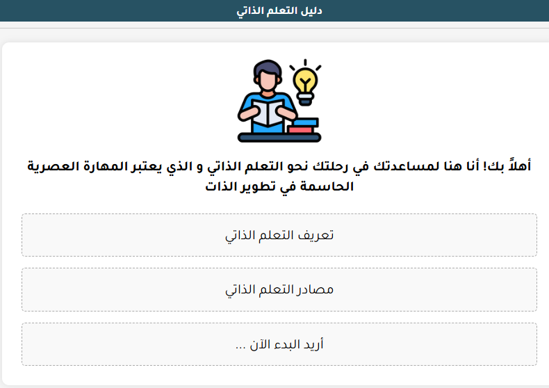في عصر يتسارع فيه تدفق المعرفة، يبرز الحاجة إلى أدوات ذكية تدعم عملية التعلم الفردي. هنا يأتي دور المساعد الذكي "دليل التعلم الذاتي"، وهو عضو متميز في
