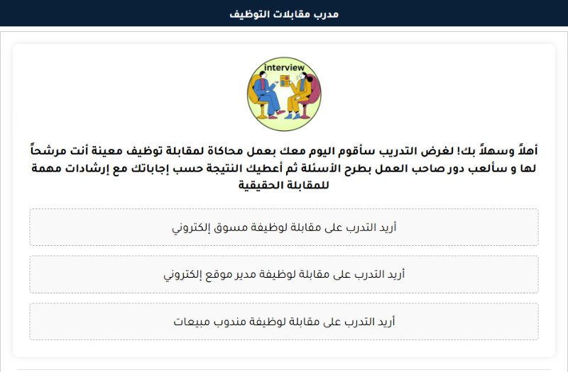 هذا المساعد المتخصص يقدم تدريبات مكثفة تحاكي مقابلات العمل الحقيقية، مع توفير إجابات نموذجية للأسئلة الصعبة، وتحليل نقاط القوة والضعف في أداء المستخدمين. من خلال تقنيات الذكاء الاصطناعي المتطورة، يستطيع المساعد تقديم نصائح مخصصة لكل مستخدم حسب مجاله وخبراته.