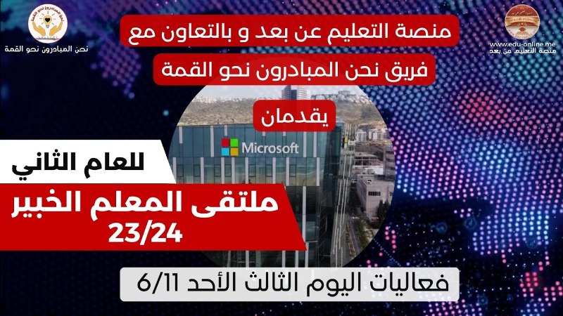 يسر منصة التعليم عن بعد وبالتعاون مع فريق نحن المبادرون نحو القمة في فلسطين بدعوتكم لحضور اليوم الثالث لملتقى المعلم الخبير 2024/2023