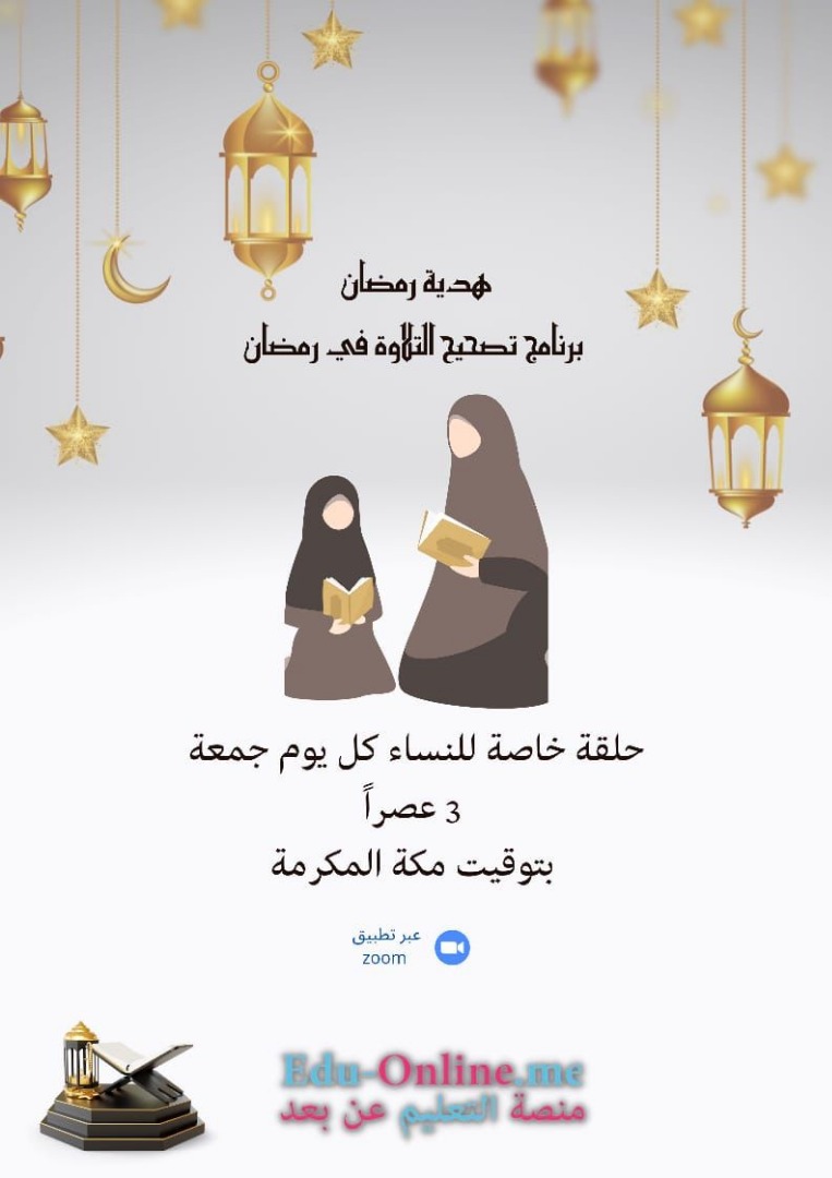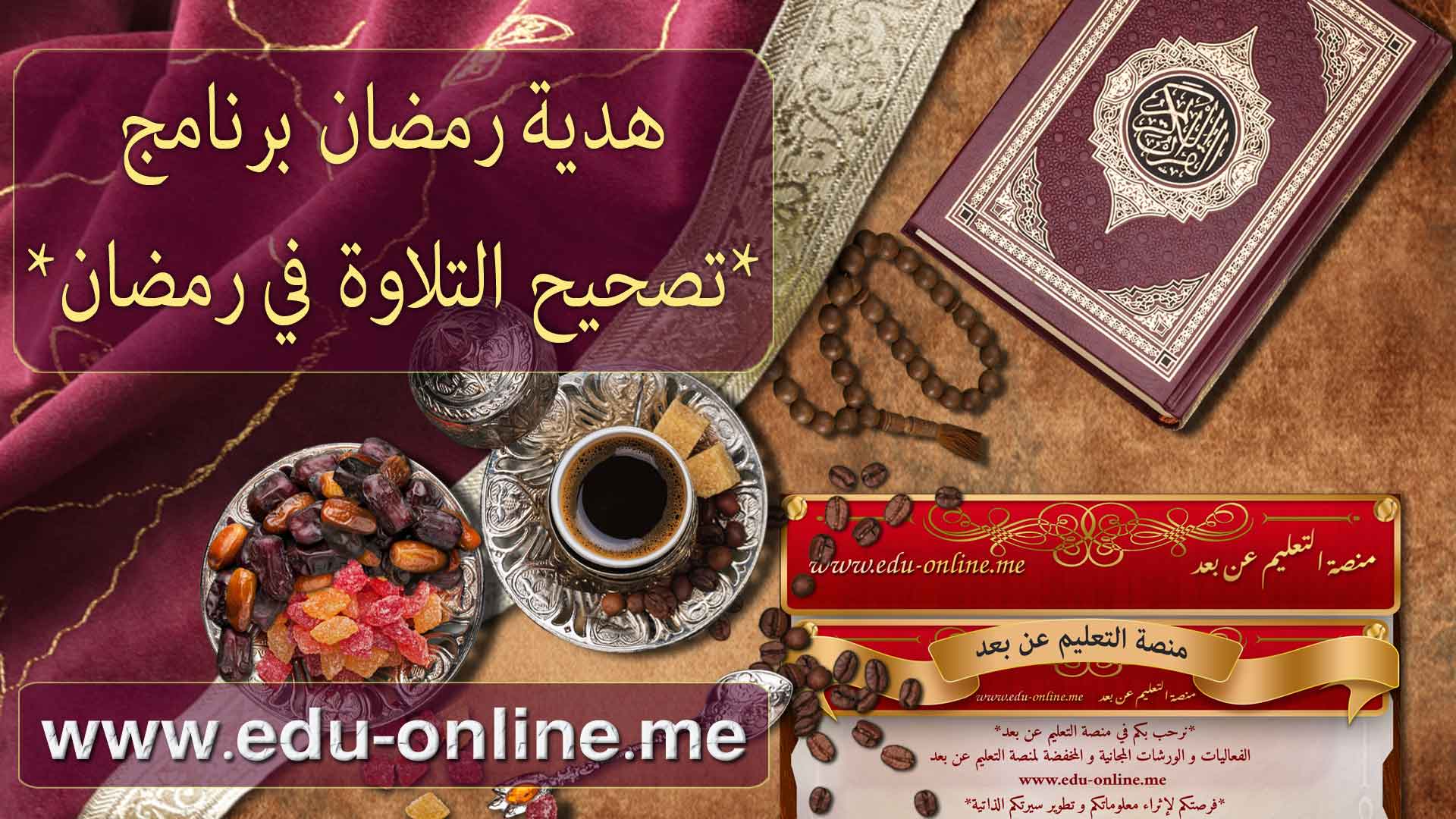 يسر *منصة التعليم عن بعد* أن تقدم لكم هدية رمضان برنامج *تصحيح التلاوة في رمضان* كل يوم *جمعة*